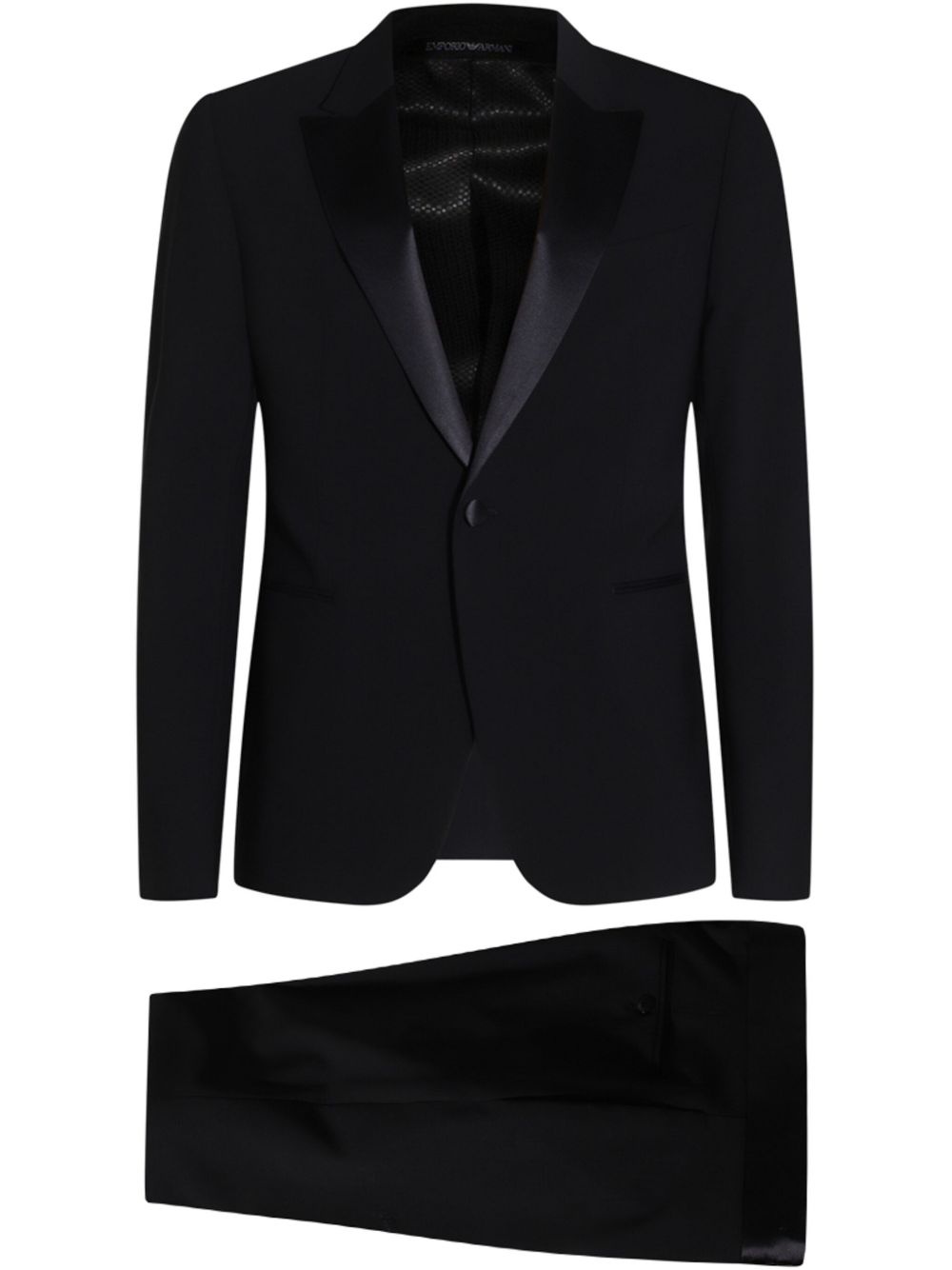 satin-trim suit Highlights - Black - Front button fastening - Concealed front fastening - Two front jetted pockets - Two side slash pockets Made in Italy Composition Virgin Wool 96%, Elastane 4%