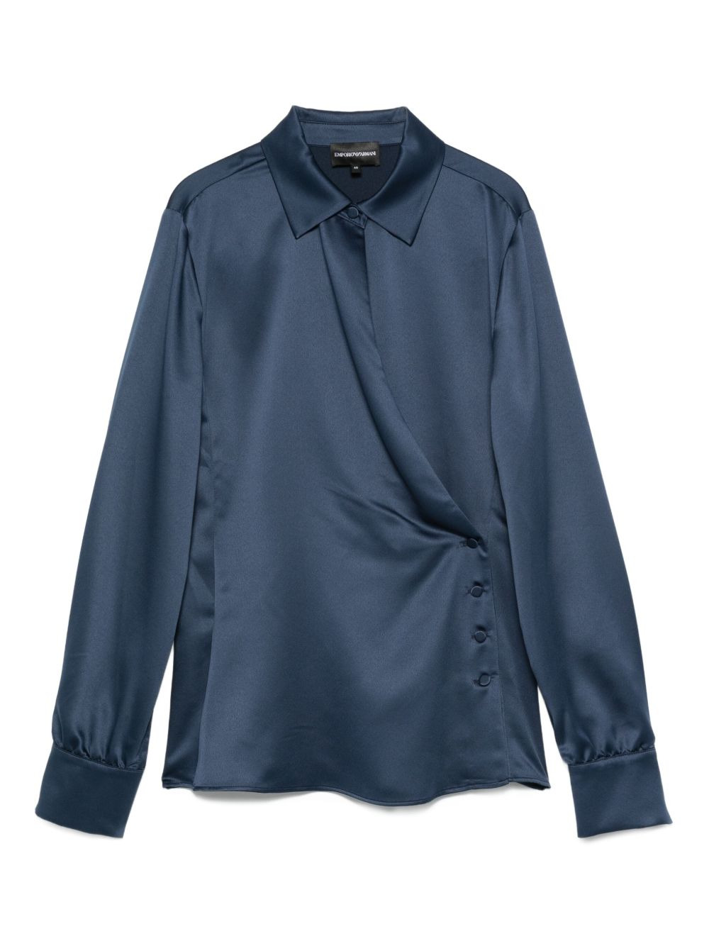 satin wrap blouse Highlights - China blue - Wrap front - Long sleeves - Button fastening - Collared neck Imported Composition Polyester 100% Washing instructions Machine Wash