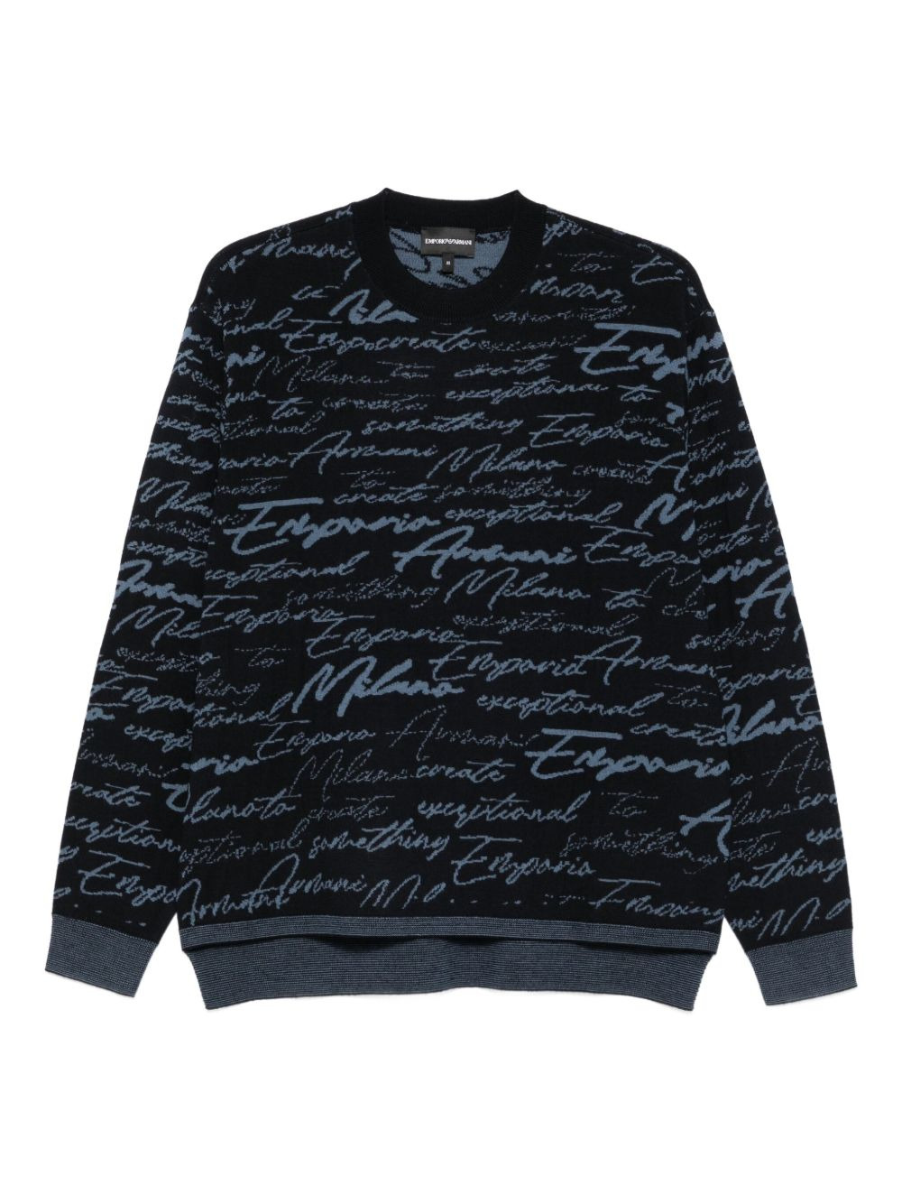 script-logo sweater Highlights - Navy blue - Crew neck - Long sleeves - Script logo pattern - Ribbed cuffs and hem Imported Composition Virgin Wool 100% SIZE & FIT Model measurements Height 6 ft 0 in(1.84 m) Bust/Chest 37.79 in(96 cm) Hips 37 in(94 cm) Waist 31.49 in(80 cm) Washing instructions Dry Clean Only