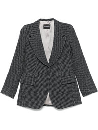 single-breasted knitted blazer Highlights - Light grey/black - Wool blend - Knitted construction - Front button fastening - Peak lapels - Long sleeves - Buttoned-cuff sleeves - Two side flap pockets - Central rear vent - Full lining - Straight hem Imported Composition Outer: Wool 70%, Polyamide 25%, other fibers 5% Lining: Polyester 100% SIZE & FIT Model measurements Height 5 ft 11 in(1.8 m) Bust/Chest 31.49 in(80 cm) Hips 35.82 in(91 cm) Waist 24.8 in(63 cm) FittingInformation Designed for a slim fit that sits just away from the body offering a close yet comfortable fit The internal shoulder pads offer a structured shape Made from a midweight non-stretch fabric