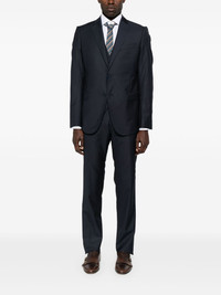single-breasted suit Highlights - Navy blue - Front button fastening - Chest welt pocket - Two side flap pockets - Two rear jetted pockets Imported Composition Outer: Virgin Wool 93%, Polyamide 7% Lining: Viscose 55%, Acetate 45% SIZE & FIT Model measurements Height 6 ft 0 in(1.84 m) Bust/Chest 35.82 in(91 cm) Hips 37 in(94 cm) Waist 28.34 in(72 cm) FittingInformation Tailored for a slim fit, this waistcoat sits just away from the body The unfinished hems allow for the length to be altered Made from a midweight non-stretch fabric
