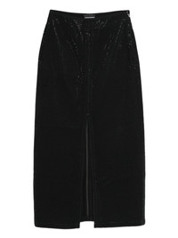 slit midi skirt Highlights - Black - Sequin embellishment - Front slit - Midi skirt Imported Composition Lyocell 70%, Cotton 30% Washing instructions Machine Wash