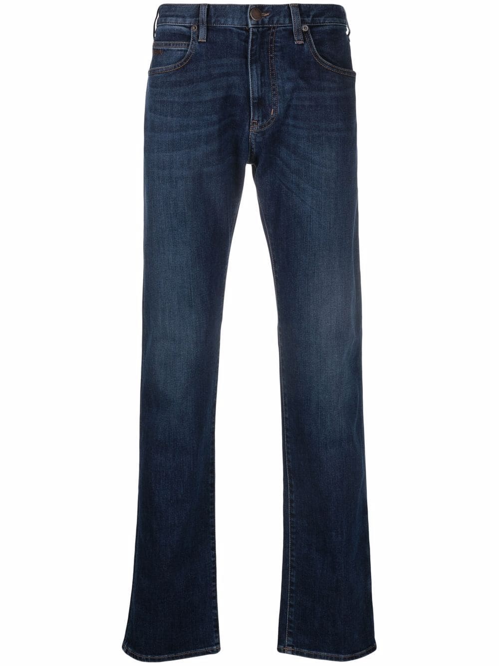 straight-leg denim jeans Adopting a timeless straight-leg silhouette, Emporio Armani finishes this pair of stretch cotton jeans with recognisable branding at the rear pocket. Imported Composition Cotton 98%, Spandex/Elastane 2% SIZE & FIT Model measurements Height 6 ft 1 in(1.86 m) Bust/Chest 35.43 in(90 cm) Hips 35.43 in(90 cm) Waist 29.92 in(76 cm) FittingInformation This piece fits true to size. We recommend you get your regular size Cut for a slim fit Made with a mid-weight stretch fabric