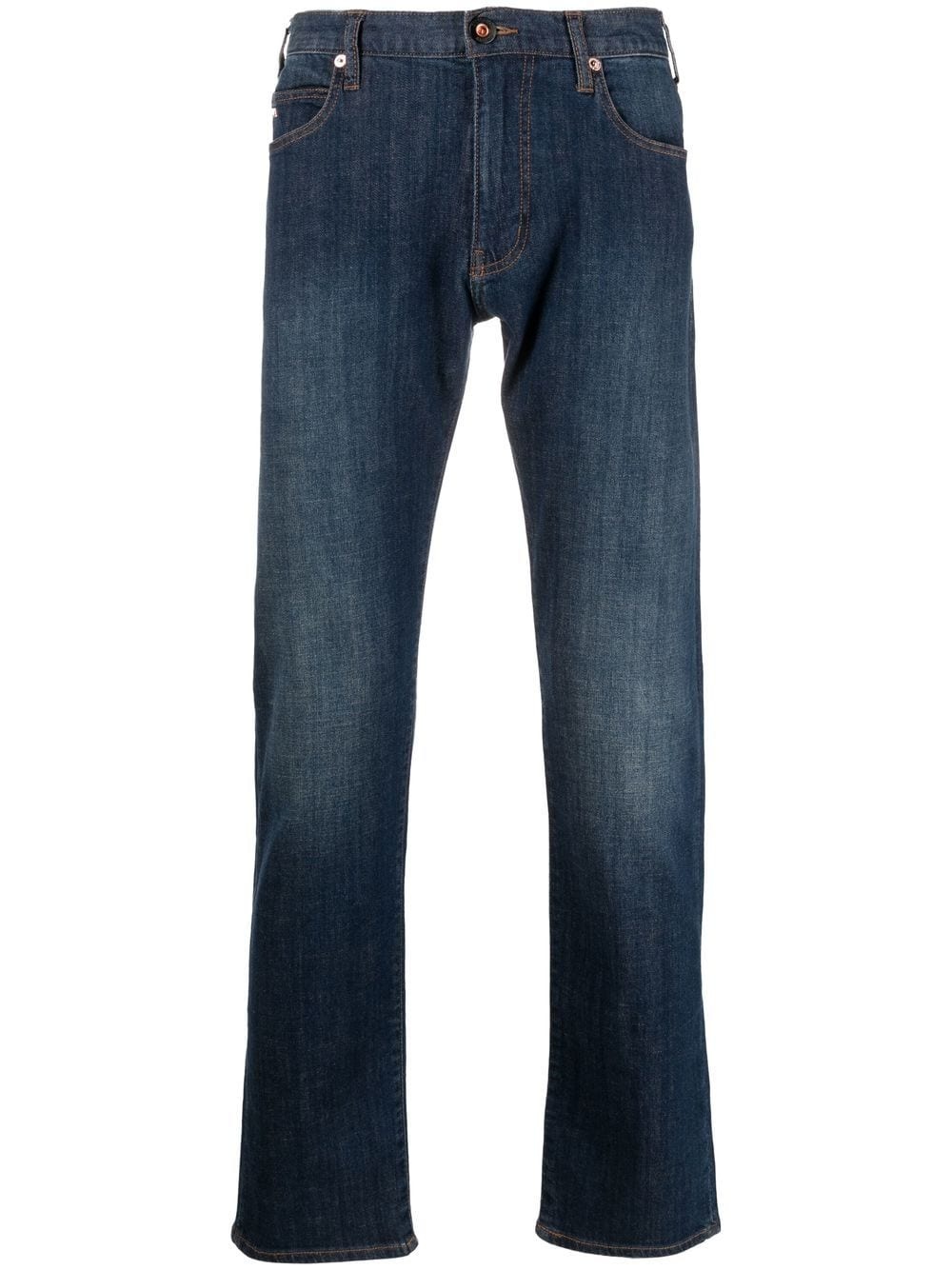 straight leg denim jeans blue cotton blend stretch-design logo patch to the rear classic five pockets straight leg Imported Composition Cotton 99%, Spandex/Elastane 1% SIZE & FIT Model measurements Height 6 ft 2 in(1.87 m) Bust/Chest 36.41 in(92.5 cm) Hips 37 in(94 cm) Waist 29.52 in(75 cm) FittingInformation This piece fits true to size. We recommend you get your regular size Cut for a slim fit Made with a mid-weight stretch fabric