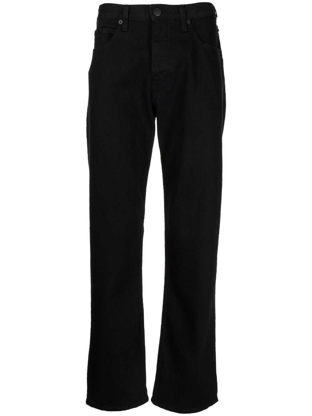straight-leg denim jeans jet-black cotton-blend front button fastening two diagonal pockets to the sides two rear patch pockets straight leg Imported Composition Cotton 99%, Spandex/Elastane 1% SIZE & FIT Model measurements Height 6 ft 1 in(1.85 m) Bust/Chest 35.03 in(89 cm) Hips 36.22 in(92 cm) Waist 29.52 in(75 cm) FittingInformation This piece fits true to size. We recommend you get your regular size Designed for a slim fit at the waist and loose over the leg Made with a mid-weight stretch fabric