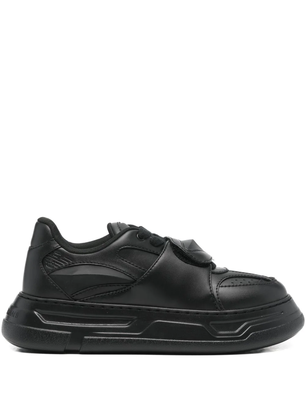 strap trainers Highlights - Black - Tonal topstitching - Front strap - Rubber sole - Round toe - Front lace-up fastening Imported Composition Outer: Polyester 100% Lining: Polyester 100% Sole: Polyethylene vinyl acetate (PEVA) 100%