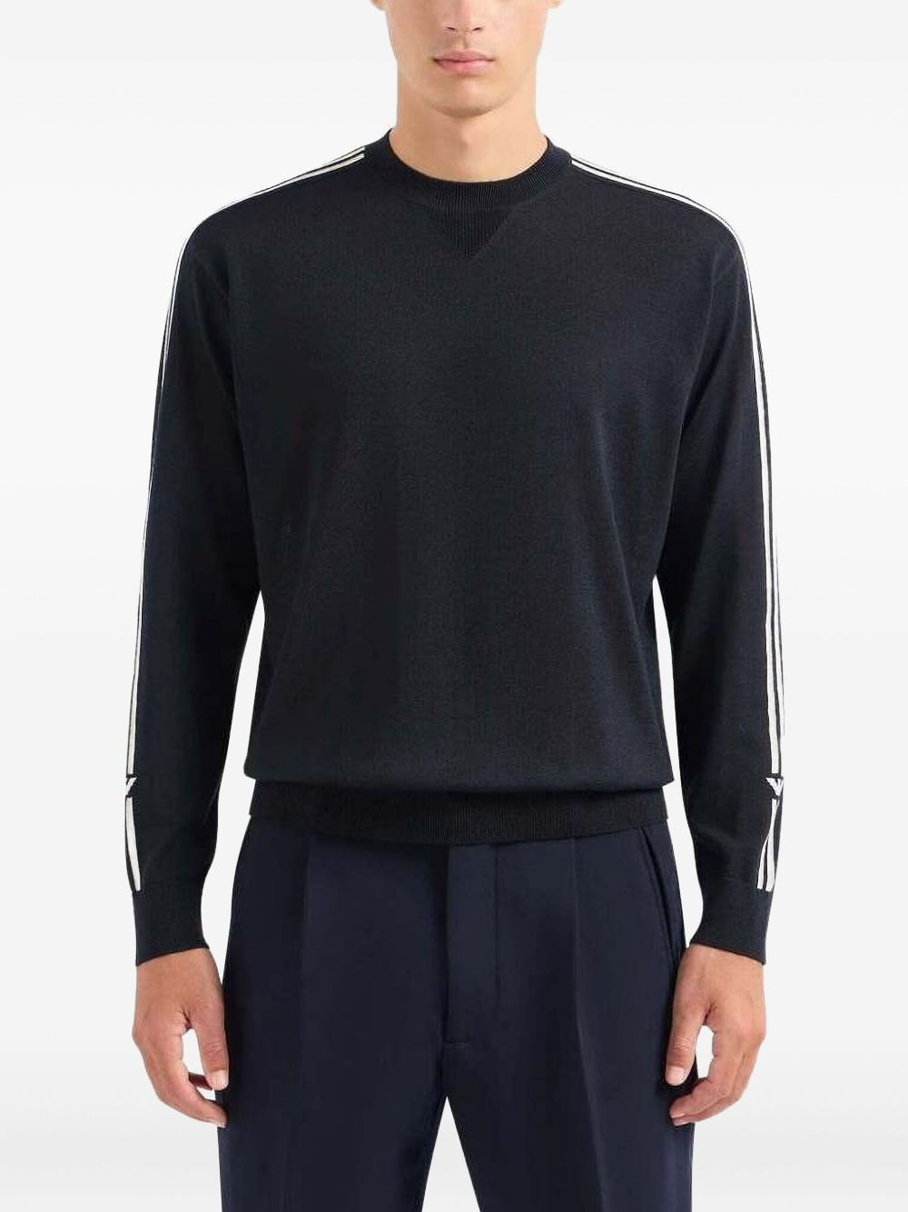 stripe-detail crew-neck sweater Highlights - Black - Crew neck - Long sleeves - Striped shoulder detail - Ribbed cuffs - Straight hem Made in Italy Composition Virgin Wool 100% Washing instructions Read Manufacturer Guidelines