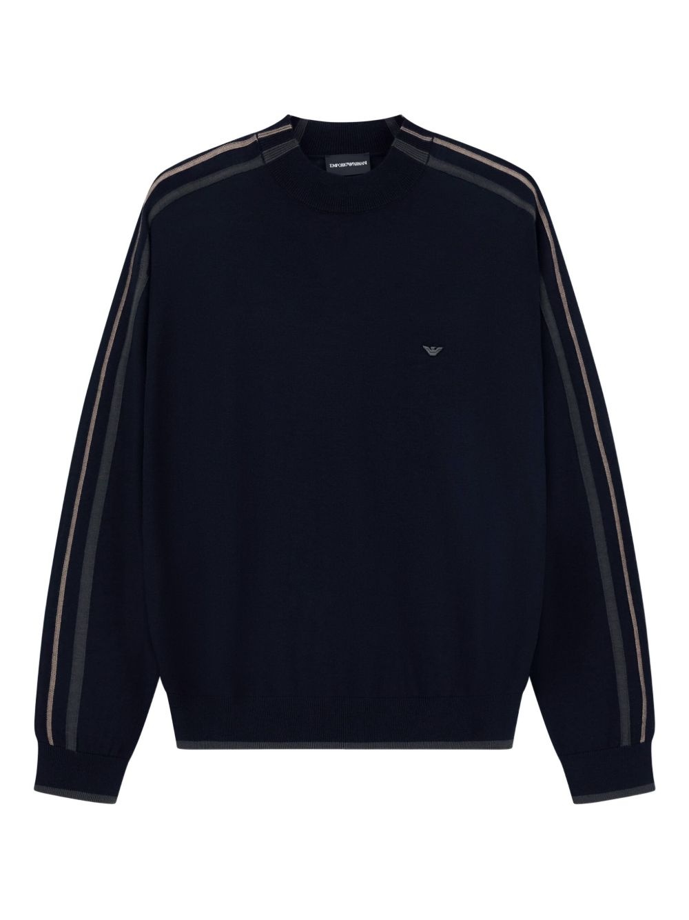 stripe-detail sweater Highlights - Navy blue - Stripe detailing - Round neck - Long sleeves Imported Composition Virgin Wool 100% Washing instructions Read Manufacturer Guidelines