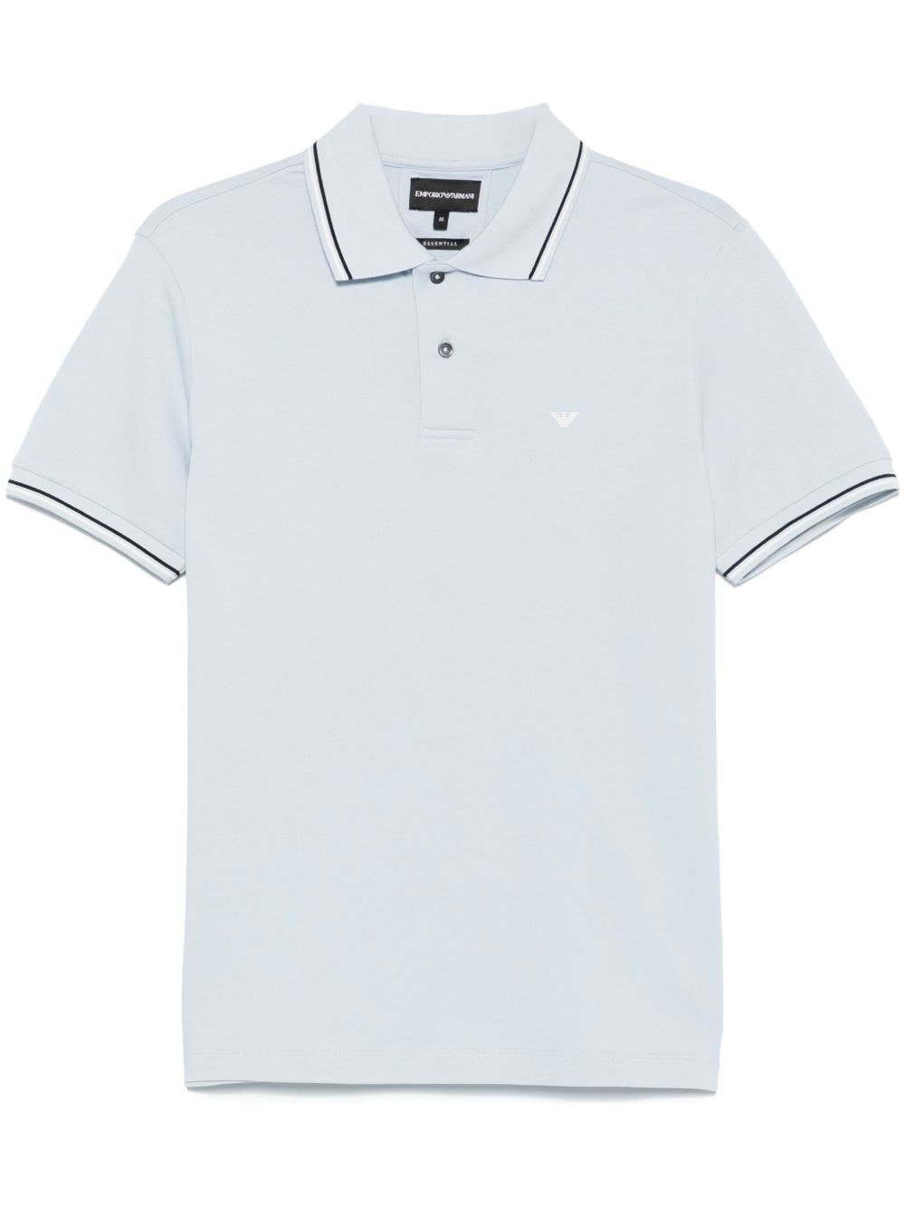 striped-trim pique polo shirt Highlights - Light blue - Short front button fastening - Ribbed trim - Short side slits - Logo print at the chest Imported Composition Cotton 96%, Elastane 4%