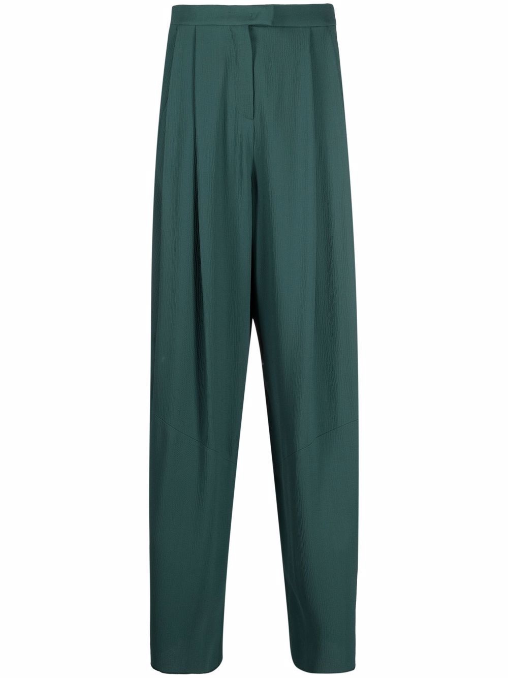 tapered-leg trousers Highlights - Green - Wide leg - Pleat detailing - Concealed front fastening - Two side inset pockets Imported Composition Outer: Viscose 54%, Acetate 46% SIZE & FIT Model measurements Height 5 ft 10 in(1.78 m) Bust/Chest 33.07 in(84 cm) Hips 35.82 in(91 cm) Waist 25.98 in(66 cm) FittingInformation This piece fits true to size. We recommend you get your regular size Designed to be fitted at the waist, loose over the leg Made with a mid-weight non-stretch fabric Washing instructions Dry Clean Only