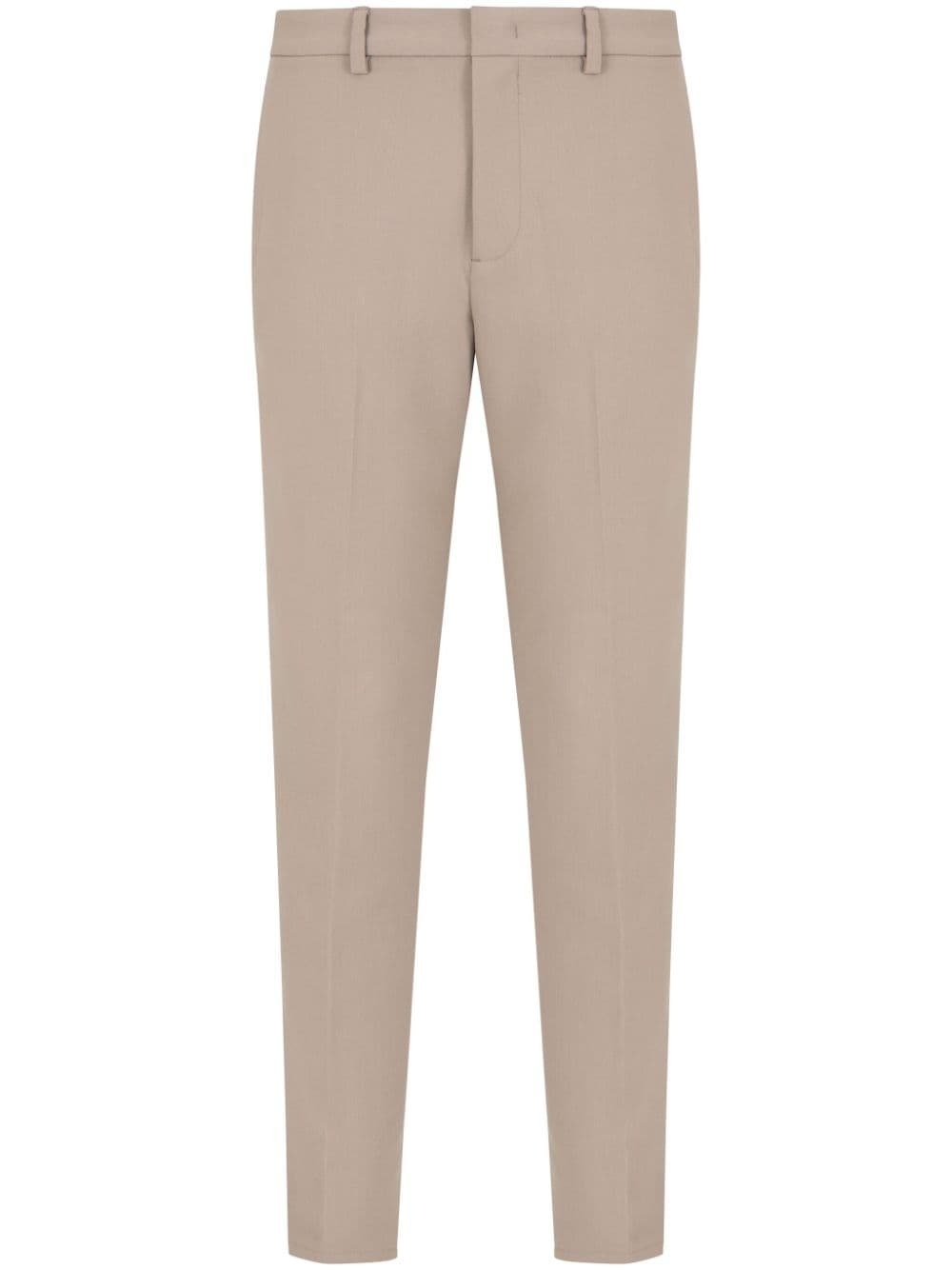 tapered trousers Highlights - Light beige - Pressed crease - Elasticated waistband - Concealed front button, hook and zip fastening - Slip pockets to the sides - Rear welt pocket Imported Composition Polyester 72%, Viscose 21%, Spandex/Elastane 7% SIZE & FIT FittingInformation Designed for a tapered leg, offering a loose unrestricted fit over the leg with a closer fit towards the ankle The partially elasticated waistband offers increased movement and comfort at the waist Made from a midweight stretch fabric, this piece offers elasticity and flexibility when worn