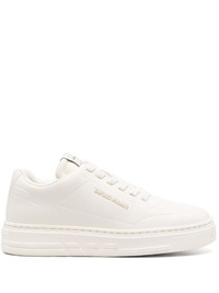 thermoformed-detail leather sneakers Highlights - White - Calf leather - Smooth grain - Panelled design - Front lace-up fastening - Thermoformed details - Logo patch at the tongue - Raised logo detail to the side - Round toe - Branded insole - Flat rubber sole Imported Composition Leather 100% SIZE & FIT Measurement HEEL 1.37 in(3.5 cm) Sole height 0.98 in(2.5 cm)