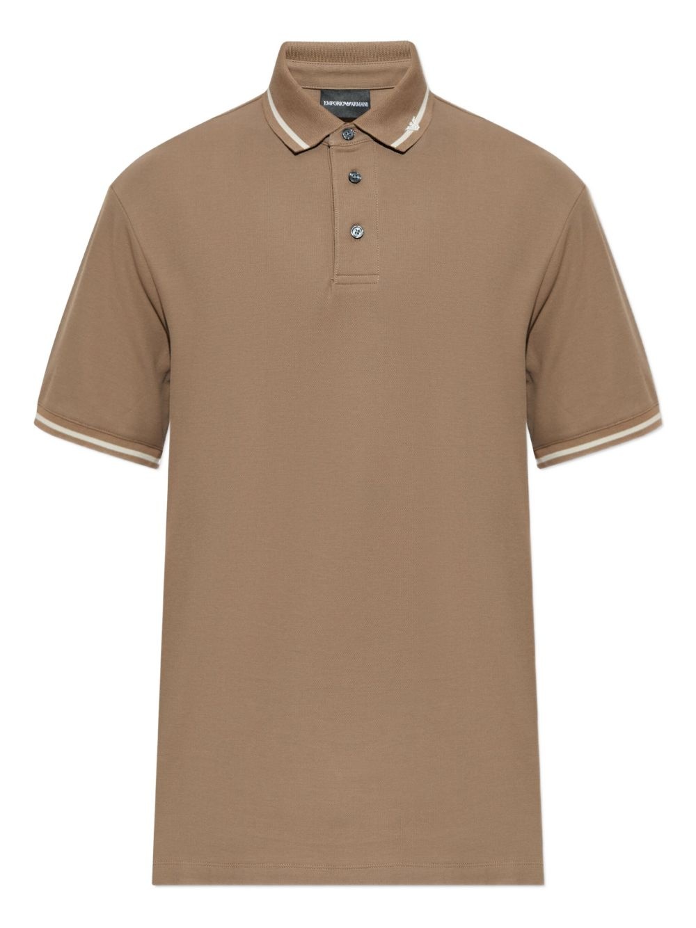 tipped polo shirt Highlights - Brown - Cotton - Three button placket - Short sleeves - Tipped collar - Embroidered eagle Imported Composition Cotton 100% Washing instructions Read Manufacturer Guidelines