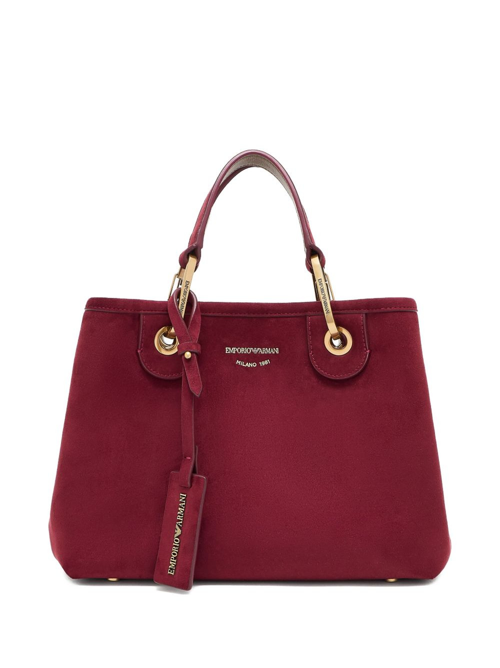top-handle tote bag Highlights - Dark red - Suede texture - Top handles - Detachable chain strap - Small zipped pouch Imported Composition Outer: Calf Suede 100%