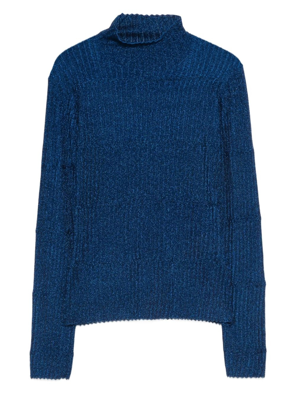 turtleneck ribbed sweater Highlights - Blue - Ribbed knit - Long sleeves - Turtleneck Imported Composition Viscose 85%, Polyester 15% SIZE & FIT Model measurements Height 5 ft 9 in(1.75 m) Bust/Chest 34.64 in(88 cm) Hips 36.61 in(93 cm) Waist 26.37 in(67 cm) Washing instructions Read Manufacturer Guidelines