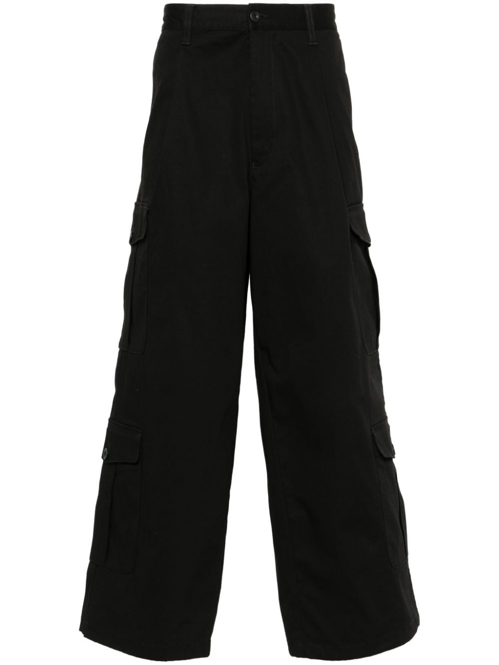 twill-weave cargo pants Highlights - Black - Cotton blend - Twill weave - Belt loops - Pleat detailing - Two diagonal pockets to the sides - Two side cargo pockets - Rear flap pocket - Logo patch to the rear - Wide leg - Concealed fly and button fastening Imported Composition Cotton 97%, Spandex/Elastane 3% SIZE & FIT Model measurements Height 6 ft 2 in(1.88 m) Bust/Chest 36.61 in(93 cm) Hips 35.82 in(91 cm) Waist 27.95 in(71 cm) FittingInformation Designed with a wide leg, offering a loose and roomy fit Adjust this piece’s waistband to your preference using the drawstring Made from a midweight stretch fabric, this piece offers elasticity and flexibility when worn This piece fits true to size – take your usual size