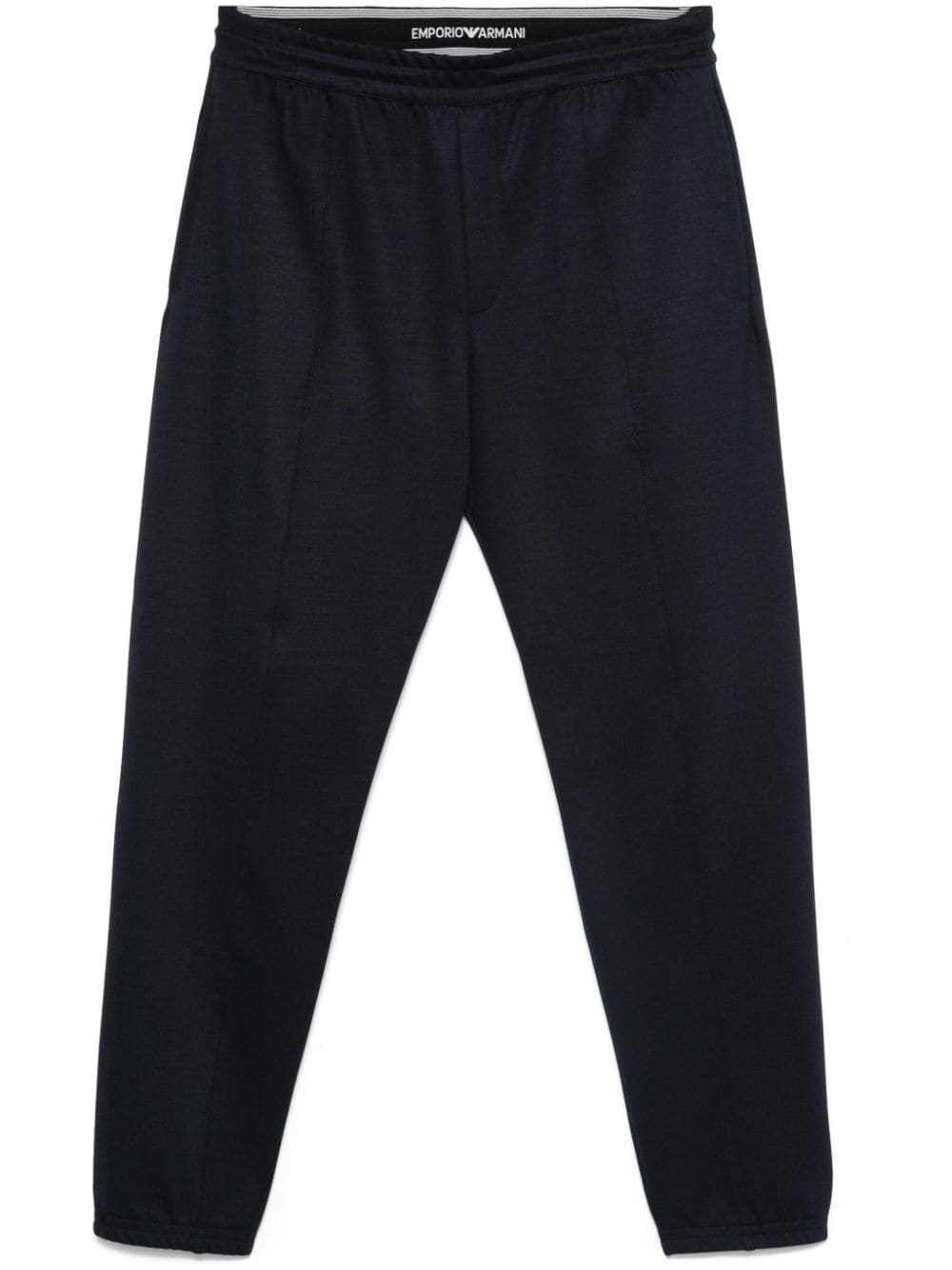 twill-weave trousers Highlights - Navy blue - Twill weave - Elasticated waistband with internal drawstring - Raised seam detail - Two side inset pockets - Two rear welt pockets - Silver-tone logo plaque - Elasticated ankles Imported Composition Outer: Polyester 72%, Wool 21%, Elastane 6% Lining: Cotton 100%, Polyester 74%, Wool 21%, Elastane 6% SIZE & FIT Model measurements Height 6 ft 2 in(1.87 m) Bust/Chest 36.22 in(92 cm) Hips 35.43 in(90 cm) Waist 29.13 in(74 cm) FittingInformation Designed for a relaxed tapered leg, allowing a comfortable loose fit above the knee with a closer fit towards the calves Adjust this piece’s waistband to your preference using the drawstring Made from a midweight stretch fabric, this piece offers elasticity and flexibility when worn