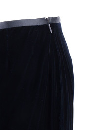 velvet trousers Highlights - Dark blue - Velvet texture - Pleat detail - Side zip fastening - Straight leg - High waist Imported Composition Viscose 65%, Cupro 35% Washing instructions Read Manufacturer Guidelines