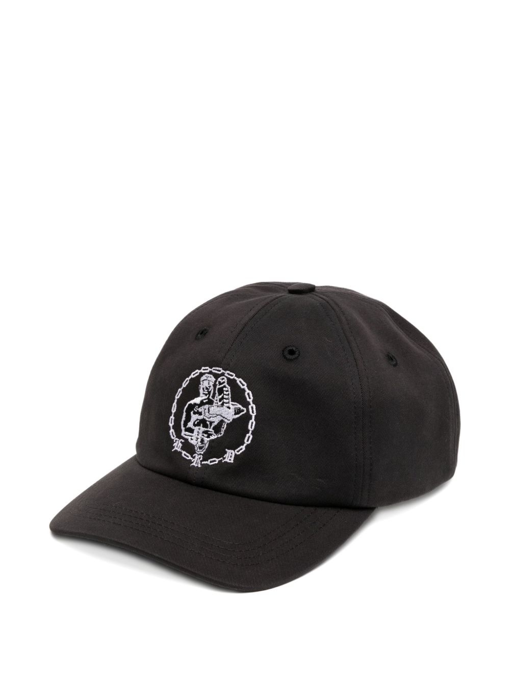 Chain cap Highlights - Black - Adjustable strap to the rear - Six-panel construction - Eyelet detailing - Curved peak Made in United States Composition Cotton 100% SIZE & FIT Measurement BRIM 2.75 in(7 cm) CIRCUMFERENCE 22.04 in(56 cm) Washing instructions Dry Clean Only