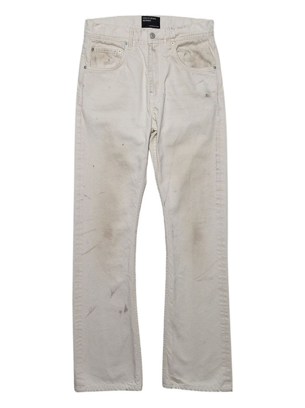 distressed cotton jeans Highlights - Off-white - Distressed effect - Five-pocket styling - Button fly - Classic straight leg - Slightly flared hem Made in United States Composition Cotton 100% Washing instructions Read Manufacturer Guidelines