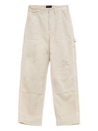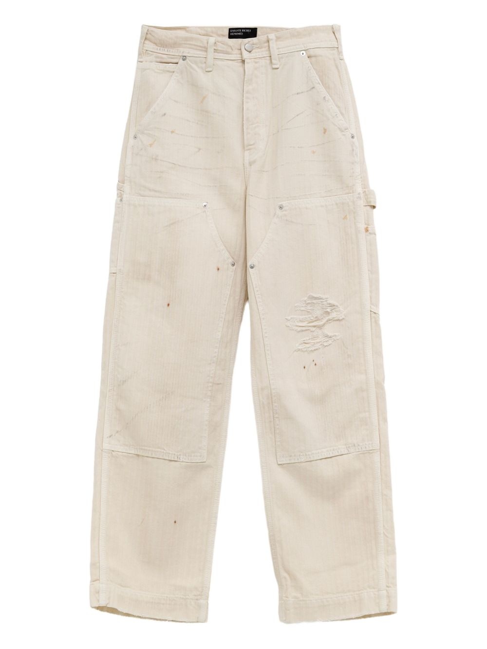 distressed herringbone trousers Highlights - Off-white - Herringbone weave - Distressed detailing - Multiple pockets - Reinforced seams - Button fastening Made in United States Composition Cotton 100% Washing instructions Read Manufacturer Guidelines