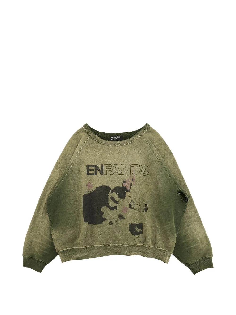 My Death My Life logo-detail raglan-sleeves crewneck sweatshirt Highlights - Gardener green - Graphic-print - Raglan sleeves - Round neck - Ribbed hem and cuffs Imported Composition Fabric 100%