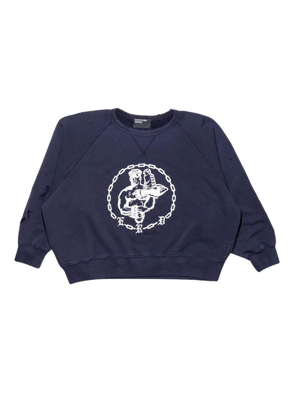 Enfants En Chaine Printed Distressed Cotton-Jersey Sweatshirt Navy