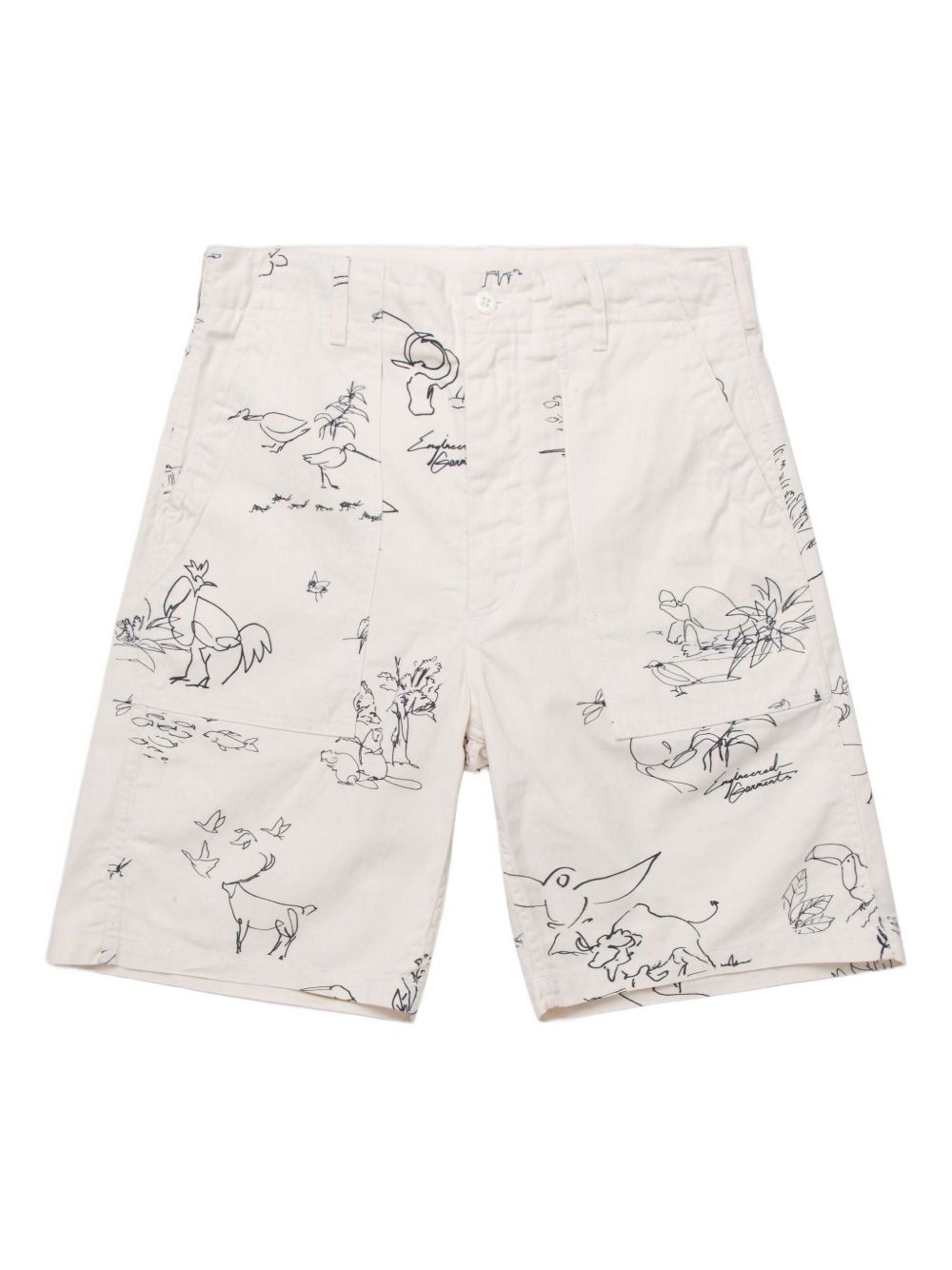 graphic-print cotton shorts Highlights - White - Concealed fly and button fastening - Belt loops - Two side slash pockets - Two rear flap pockets Made in United States Composition Cotton 100%