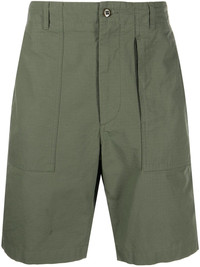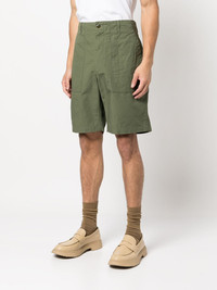 high-waisted straight-leg shorts high-waisted straight-leg shorts from ENGINEERED GARMENTS featuring olive green, cotton, high-waisted, front button and zip fastening, belt loops, two side slit pockets, two rear flap pockets and above-knee length. Made in United States Composition Cotton 100% SIZE & FIT Model measurements Height 6 ft 2 in(1.88 m) Bust/Chest 38.18 in(97 cm) Hips 37 in(94 cm) Waist 29.92 in(76 cm) Washing instructions Machine Wash