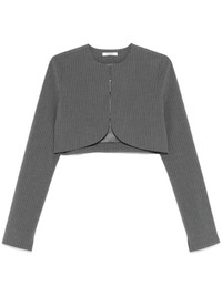 Bract top Highlights - Medium grey - Front hook and eye fastening - Split cuffs - Full lining - Pinstripe pattern Imported Composition Outer: Polyester 96%, Spandex/Elastane 4% Lining: Cupro 100% SIZE & FIT Model measurements Height 5 ft 10 in(1.77 m) Bust/Chest 34.64 in(88 cm) Hips 35.43 in(90 cm) Waist 24.8 in(63 cm) FittingInformation Designed for a slim fit that sits just away from the body offering a close yet comfortable fit Made from a midweight fabric