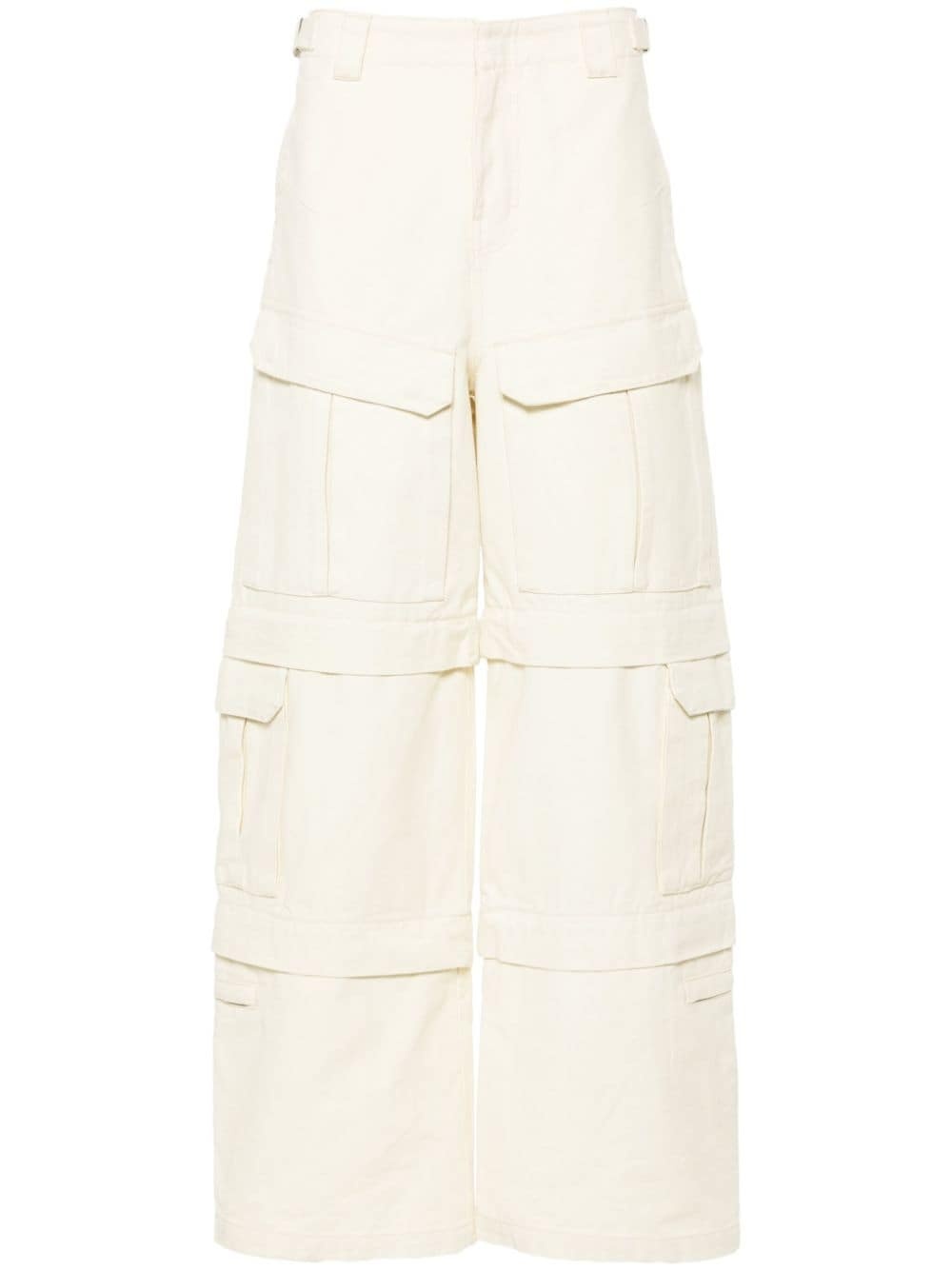 Carvas trousers Highlights - Ivory white - Cotton - Canvas - Concealed fly and button fastening - Belt loops - Adjustable waist strap - Two side welt pockets - Dart detailing - Multiple cargo pockets - Detachable legs - Two rear flap pockets - Wide leg - When buying this unisex item, keep in mind that it is graded in standard men's sizing. Imported Composition Cotton 100% SIZE & FIT Model measurements Height 5 ft 10 in(1.78 m) Bust/Chest 31.49 in(80 cm) Hips 37 in(94 cm) Waist 23.62 in(60 cm) FittingInformation This piece is unisex and is designed with a wide-leg, whether you usually select women's or men's sizes Made from a midweight non-stretch fabric Washing instructions Machine Wash
