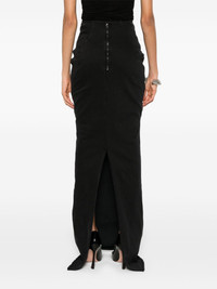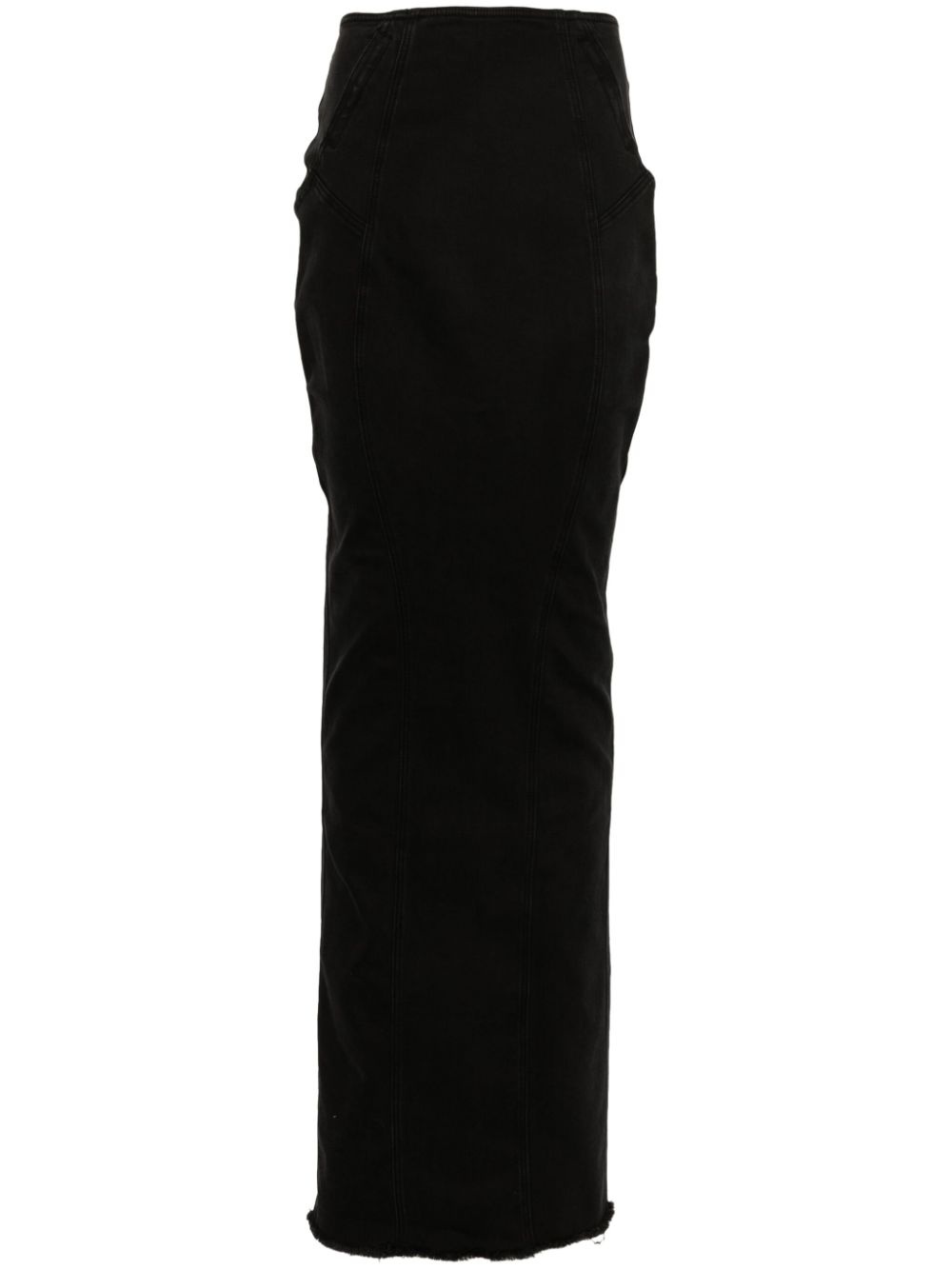 Channel denim maxi skirt Highlights - Black - Cotton blend - Denim - Pencil silhouette - Seam detailing - Two side zip-fastening pockets - Central rear vent - Raw-cut hem - Unlined - Concealed rear hook and zip fastening Imported Composition Cotton 99%, Spandex/Elastane 1% SIZE & FIT Model measurements Height 5 ft 9 in(1.76 m) Bust/Chest 31.88 in(81 cm) Hips 35.43 in(90 cm) Waist 24.8 in(63 cm) FittingInformation This maxi-length skirt is intended to be worn high on the waist The vented hem offers movement at the rear Constructed from stretch denim, this piece offers a stretch fit with durability This piece fits true to size – take your usual size