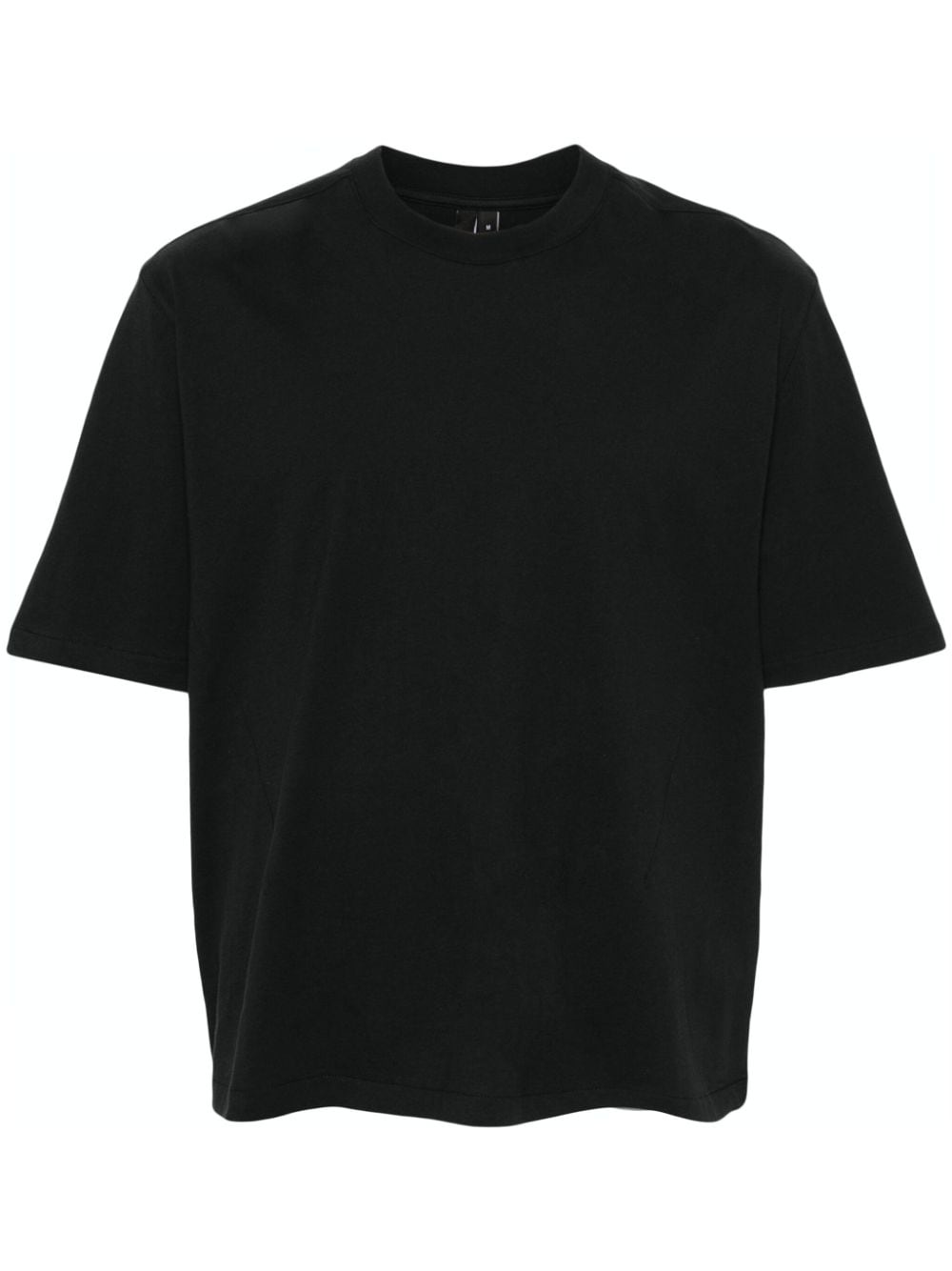 Dart crew-neck T-shirt Highlights - Black - Organic cotton - Jersey texture - Ribbed crew neck - Short sleeves - Rear dart detailing - Straight hem - When buying this unisex item, keep in mind that it is graded in standard men's sizing. Imported Composition Organic Cotton 100% SIZE & FIT Model measurements Height 5 ft 11 in(1.8 m) Bust/Chest 31.49 in(80 cm) Hips 36.61 in(93 cm) Waist 24.4 in(62 cm) Measurement CHEST 41.73 in(106 cm) SLEEVE LENGTH 9.84 in(25 cm) LENGTH 22.83 in(58 cm) Shoulder Width 17.71 in(45 cm) FittingInformation This unisex piece is designed for a loose fit whether you usually select women's or men's sizes Made from a midweight non-stretch fabric, this piece offers minimal elasticity when worn