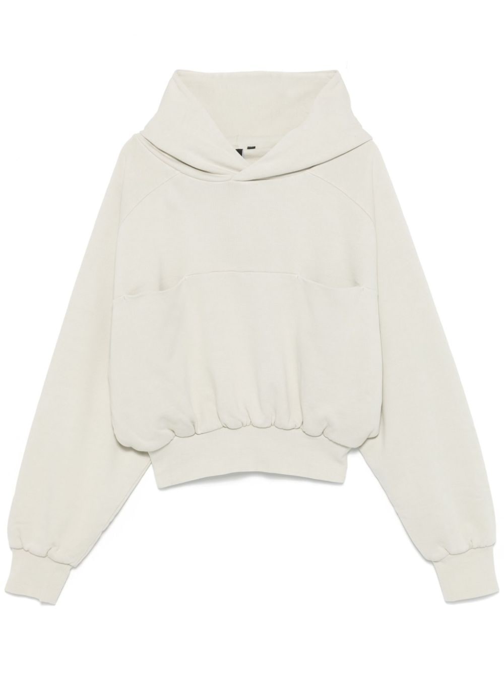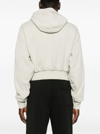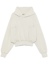 Double Double hoodie Highlights - Cloud white - Organic cotton - Jersey texture - Classic hood - Long raglan sleeves - Two slit pockets at the chest - Two side slit pockets - Ribbed cuffs and hem - Cropped - When buying this unisex item, keep in mind that it is graded in standard men's sizing. Imported Composition Organic Cotton 100% SIZE & FIT Model measurements Height 5 ft 9 in(1.75 m) Bust/Chest 34.64 in(88 cm) Hips 36.61 in(93 cm) Waist 26.37 in(67 cm) Measurement CHEST 51.96 in(132 cm) LENGTH 23.62 in(60 cm) SLEEVE LENGTH 25.59 in(65 cm) Shoulder Width 28.74 in(73 cm) FittingInformation This unisex piece is designed for a loose fit whether you usually select women's or men's sizes The ribbed hem offers a close, comfortable fit Made from a midweight non-stretch fabric, this piece offers minimal elasticity when worn