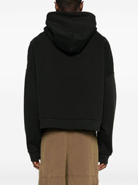 drop-shoulder cotton hoodie Highlights - Black - Organic cotton - Jersey texture - Classic hood - Drop shoulder - Long sleeves - Ribbed cuffs and hem - Front pouch pocket - French terry lining - Straight hem - When buying this unisex item, keep in mind that it is graded in standard men's sizing. Imported Composition Organic Cotton 100% SIZE & FIT Model measurements Height 5 ft 10 in(1.77 m) Bust/Chest 31.88 in(81 cm) Hips 36.22 in(92 cm) Waist 24.01 in(61 cm) Measurement SLEEVE LENGTH 20.47 in(52 cm) LENGTH 20.47 in(52 cm) Shoulder Width 29.13 in(74 cm) FittingInformation This piece is unisex – if you usually select men's sizing expect a loose fit throughout; if you usually select women's sizes, expect an oversized fit Made from a midweight non-stretch fabric, this piece offers minimal elasticity when worn Washing instructions Machine Wash