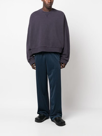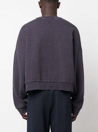 drop-shoulder crew-neck sweatshirt Highlights - Dark purple - Organic cotton - Crew neck - Drop shoulder - Long sleeves - Ribbed cuffs and hem - Straight hem - When buying this unisex item, keep in mind that it is graded in standard men's sizing. Imported Composition Organic Cotton 100% SIZE & FIT Model measurements Height 5 ft 11 in(1.8 m) Bust/Chest 31.49 in(80 cm) Hips 36.22 in(92 cm) Waist 25.59 in(65 cm) Measurement CHEST 61.41 in(156 cm) LENGTH 22.04 in(56 cm) SLEEVE LENGTH 21.65 in(55 cm) Shoulder Width 31.1 in(79 cm) FittingInformation This piece is unisex – if you usually select men's sizing expect a loose fit throughout; if you usually select women's sizes, expect an oversized fit Made from a midweight non-stretch fabric, this piece offers minimal elasticity when worn