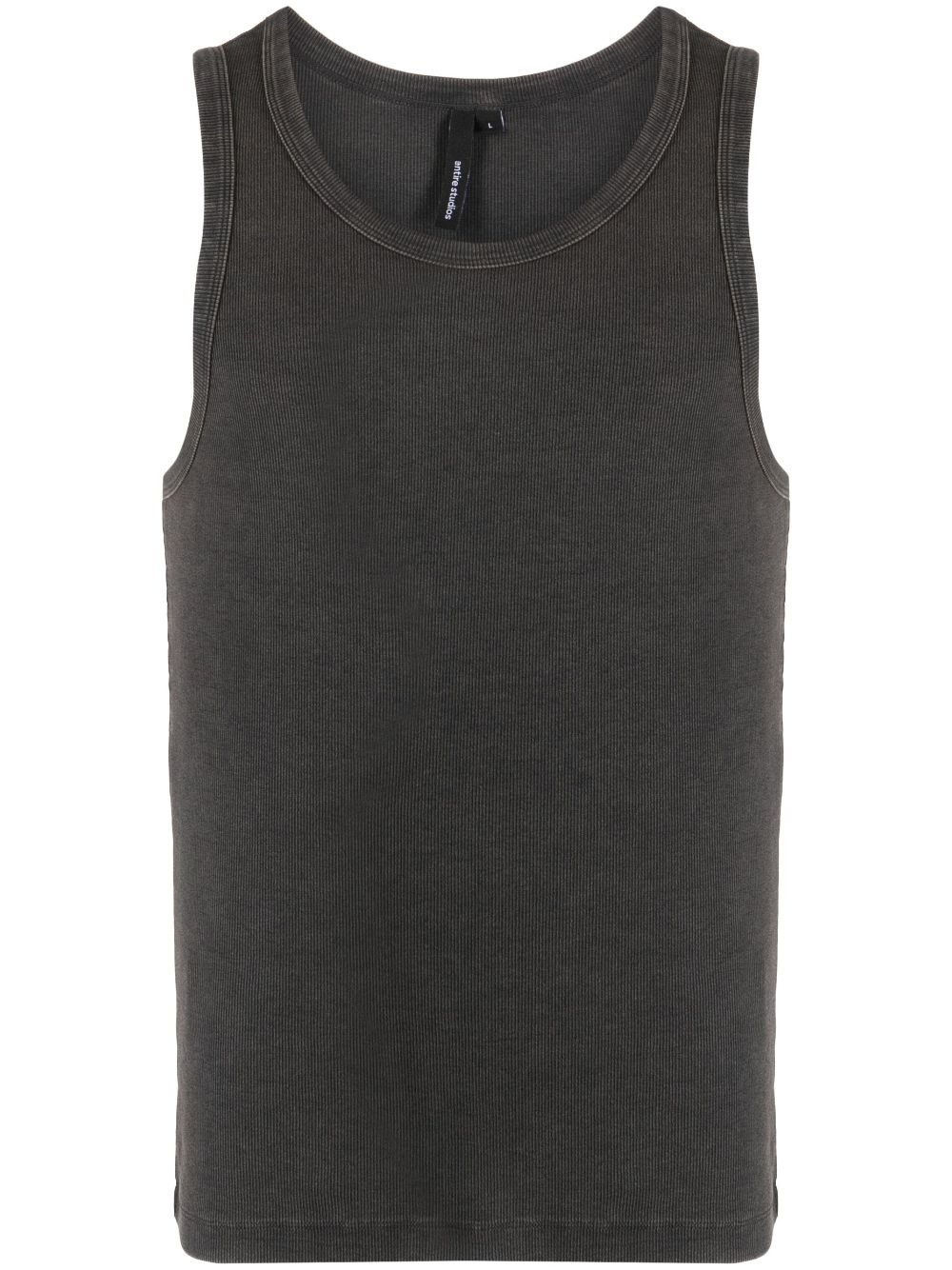fine-ribbed tank top Highlights - Dark grey - Stretch organic cotton - Fine ribbed - Scoop neck - Sleeveless - Straight hem Imported Composition Organic Cotton 95%, Elastane 5% SIZE & FIT Model measurements Height 6 ft 2 in(1.89 m) Bust/Chest 37.79 in(96 cm) Hips 37 in(94 cm) Waist 29.92 in(76 cm) Measurement CHEST 23.62 in(60 cm) LENGTH 23.22 in(59 cm) FittingInformation Designed for a close fit throughout Made from a midweight stretch fabric, this piece offers elasticity and flexibility when worn This piece fits true to size – take your usual size