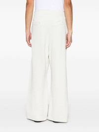 Full track pants Highlights - Off-white - Organic cotton - Jersey texture - Elasticated waistband with internal drawstring - Two side slit pockets - Two rear welt pockets - French terry lining - Rolled trim - When buying this unisex item, keep in mind that it is graded in standard men's sizing. Imported Composition Organic Cotton 100% SIZE & FIT Model measurements Height 5 ft 10 in(1.78 m) Bust/Chest 33.85 in(86 cm) Hips 36.61 in(93 cm) Waist 26.77 in(68 cm) Measurement FRONT RISE 17.32 in(44 cm) INSIDE LEG 29.52 in(75 cm) HIPS 42.12 in(107 cm) WAIST 26.37 in(67 cm) FittingInformation This piece is unisex and is designed with a wide-leg, whether you usually select women's or men's sizes Adjust this piece’s waistband to your preference using the drawstring Made from a midweight non-stretch fabric, this piece offers minimal elasticity when worn