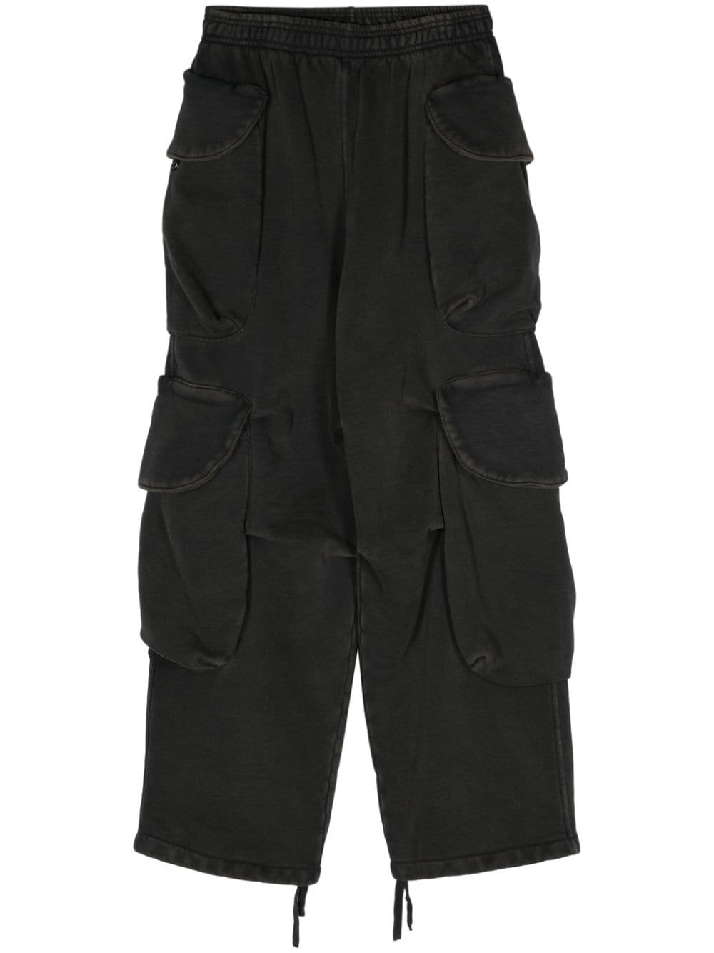 Heavy Gocar mid-rise cargo trousers Highlights - Black - Organic cotton - Jersey texture - Washed effect - Dart detailing - Mid-rise - Elasticated waistband with internal drawstring - Multiple cargo pockets - Wide leg - Drawstring hem - When buying this unisex item, keep in mind that it is graded in standard men's sizing. Made in United States Composition Organic Cotton 100% SIZE & FIT FittingInformation This piece is unisex and is designed with a wide-leg, whether you usually select women's or men's sizes The elasticated waist allows for a comfortable fit Made from a midweight non-stretch fabric, this piece offers minimal elasticity when worn