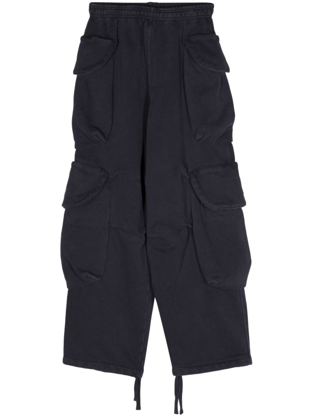 Heavy Gocar mid-rise cargo trousers Highlights - Blue - Organic cotton - Jersey texture - Dart detailing - Mid-rise - Elasticated waistband with internal drawstring - Multiple cargo pockets - Wide leg - Drawstring hem - When buying this unisex item, keep in mind that it is graded in standard men's sizing. Imported Composition Organic Cotton 100% SIZE & FIT FittingInformation This piece is unisex and is designed with a wide-leg, whether you usually select women's or men's sizes The elasticated waist allows for a comfortable fit Made from a midweight non-stretch fabric, this piece offers minimal elasticity when worn