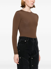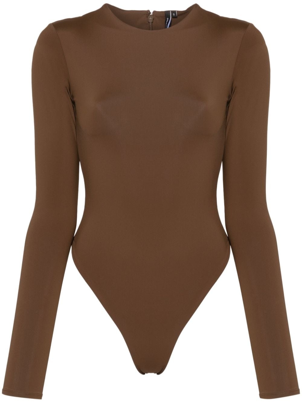 long-sleeved bodysuit Highlights - Chocolate brown - Stretch-design - Round neck - Long sleeves - Internal logo tag - Full lining - Press-stud fastening - Concealed rear hook and zip fastening - Just a reminder that this piece must be tried on over your own garments. Imported Composition Nylon 80%, Elastane 20% SIZE & FIT Model measurements Height 5 ft 10 in(1.77 m) Bust/Chest 33.85 in(86 cm) Hips 37 in(94 cm) Waist 26.37 in(67 cm) FittingInformation Designed for a close fit throughout Made from a midweight stretch fabric, this piece offers elasticity and flexibility when worn This piece fits true to size – take your usual size Washing instructions Machine Wash