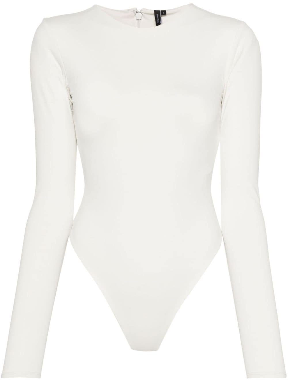 long-sleeved bodysuit Highlights - Chalk white - Stretch-design - Round neck - Long sleeves - Internal logo tag - Full lining - Press-stud fastening - Just a reminder that this piece must be tried on over your own garments. Imported Composition Nylon 80%, Elastane 20% Washing instructions Machine Wash