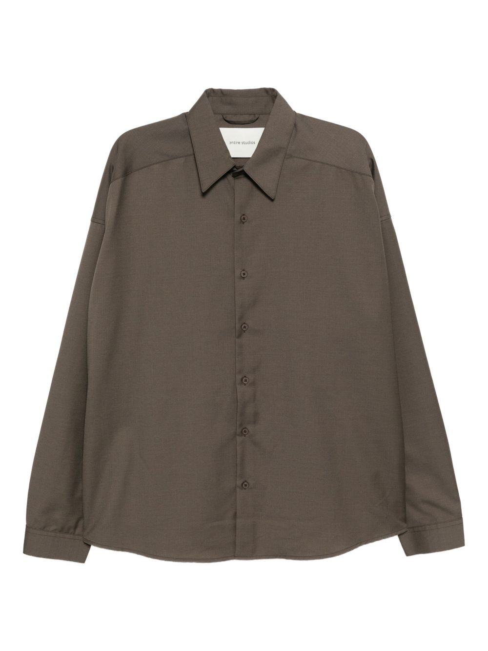 long-sleeved shirt Highlights - Cedar brown - Front button fastening - Buttoned cuffs Imported Composition Wool 50%, TENCEL™ 50% SIZE & FIT Model measurements Height 6 ft 2 in(1.88 m) Bust/Chest 32.28 in(82 cm) Hips 35.43 in(90 cm) Waist 27.95 in(71 cm) FittingInformation Designed to be unstructured, offering a loose fit throughout Made from a midweight non-stretch fabric