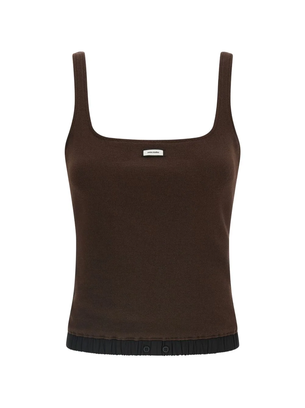 Lounge ribbed logo patch tank top Highlights - Brown - Logo patch - Ribbed - Poplin insert - Two buttons Imported Composition Cotton 93%, Elastane 7% Washing instructions Read Manufacturer Guidelines