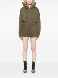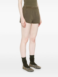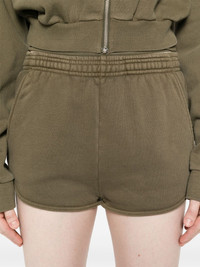 micro shorts Highlights - Ivy green - Organic cotton - Jersey texture - Elasticated waistband with internal drawstring - Two side slit pockets - Fleece lining - Thigh-length Imported Composition Organic Cotton 100% SIZE & FIT Model measurements Height 5 ft 9 in(1.75 m) Bust/Chest 34.64 in(88 cm) Hips 36.61 in(93 cm) Waist 26.37 in(67 cm) FittingInformation Designed for a slim fit that sits just away from the body offering a close yet comfortable fit Adjust this piece’s waistband to your preference using the drawstring Made from a midweight non-stretch fabric, this piece offers minimal elasticity when worn