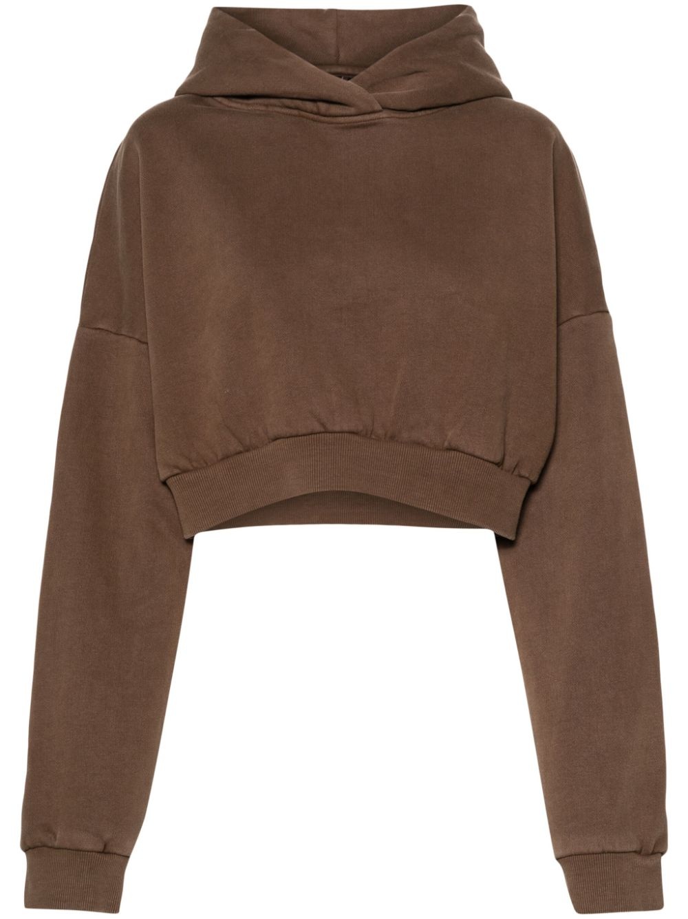 organic-cotton cropped hoodie Highlights - Brown - Organic cotton - Jersey texture - Classic hood - Drop shoulder - Long sleeves - Ribbed cuffs and hem - Cropped - Straight hem - Fleece lining Imported Composition Organic Cotton 100% SIZE & FIT Model measurements Height 5 ft 11 in(1.8 m) Bust/Chest 31.49 in(80 cm) Hips 36.22 in(92 cm) Waist 25.59 in(65 cm) FittingInformation Designed to be unstructured, offering a loose fit throughout Made from a midweight non-stretch fabric, this piece offers minimal elasticity when worn This piece fits true to size – take your usual size