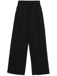 organic cotton track trousers Highlights - Black - Organic cotton - Jersey texture - Elasticated waistband with internal drawstring - Mid-rise - Two side slit pockets - Dart detailing - Two rear welt pockets - Wide leg - Raw-cut hem - When buying this unisex item, keep in mind that it is graded in standard men's sizing. Imported Composition Organic Cotton 100% SIZE & FIT FittingInformation This piece is unisex and is designed with a wide-leg, whether you usually select women's or men's sizes Adjust this piece’s waistband to your preference using the drawstring Made from a midweight non-stretch fabric, this piece offers minimal elasticity when worn