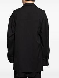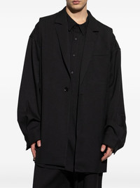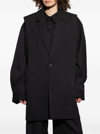 plateau vest Highlights - Black - Front button fastening - Notched lapels - Sleeveless - Two side inset pockets - When buying this unisex item, keep in mind that it is graded in standard men's sizing. Imported Composition Viscose 69%, Wool 30%, Lycra 1% SIZE & FIT FittingInformation Designed to be unstructured, offering a loose fit throughout Made from a midweight non-stretch fabric