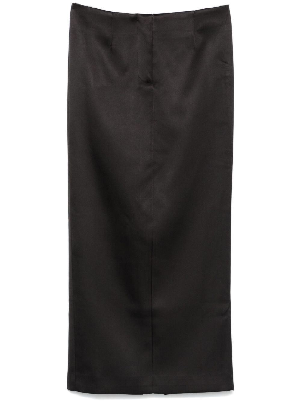 Script maxi skirt Highlights - Black - Concealed front button, hook and zip fastening - Dart detailing - Rear slit - Full lining Imported Composition Lining: Cupro 100% Outer: Polyester 100% SIZE & FIT Model measurements Height 5 ft 10 in(1.77 m) Bust/Chest 34.64 in(88 cm) Hips 35.43 in(90 cm) Waist 24.8 in(63 cm) FittingInformation This maxi-length skirt is intended to be worn low on the hips Made from a midweight non-stretch fabric