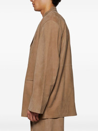 single-breasted blazer Highlights - Almond beige - Concealed front button fastening - Two front welt pockets - Central rear vent - When buying this unisex item, keep in mind that it is graded in standard men's sizing. Imported Composition Suede 100%